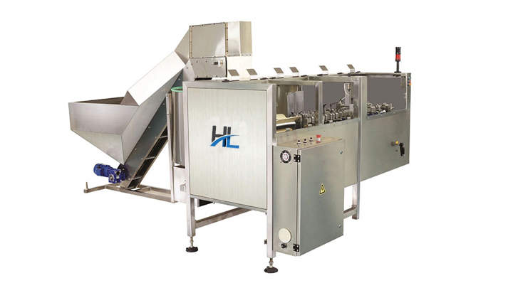设机主要有上瓶机、转盘、瓶剔除部件、理瓶部件组成。大量无序的瓶子由上瓶机被投入到转盘中,并通过输送带传递到理瓶部位,使瓶子能竖立的传送到用户的输送带上。